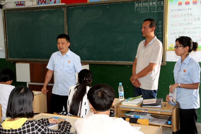 课后,法官们还走进大安中学教室,向学生赠发了该院精心设计编印的“爱心提醒卡”,并当场征求校领导、老师和学生对法律课的意见、建议。