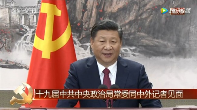 在刚才召开的中共十九届一中全会上,选举产生了新一届中共中央领导机构,全会选举我继续担任中共中央委员会总书记。这是对我的肯定,更是鞭策和激励。