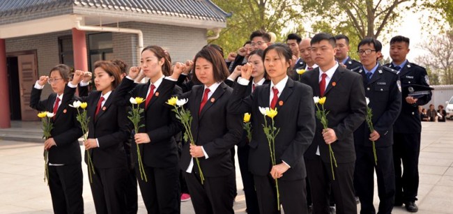 4月3日清明节前夕,湖滨区法院组织20名党团员青年干警前往陕县烈士陵园开展“缅怀先烈、弘扬爱国主义精神”活动,举行了简朴庄严的祭扫仪式,以此缅怀先烈,寄托哀思,继承先烈遗志,续写光荣新篇章。