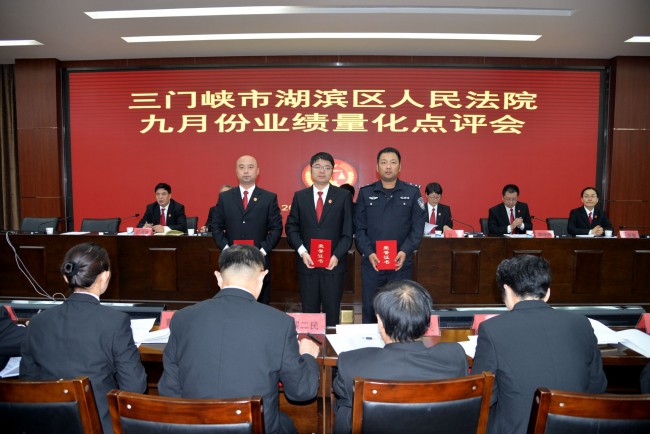 10月9日下午,湖滨区法院召开全院干警会,传达贯彻市法院当日上午院务会会议精神,通报了9月份审判执行及综合工作及“提升司法质效百日办案竞赛”开展情况,对办案模范进行表彰,对下阶段各项工作安排部署。党组书记、院长党立新抽查了案件流程节点完成情况并对9月份工作进行点评,要求全院干警以奋发有为的精神状态狠抓工作落实,决战决胜第四季度,冲刺年终各项工作目标。