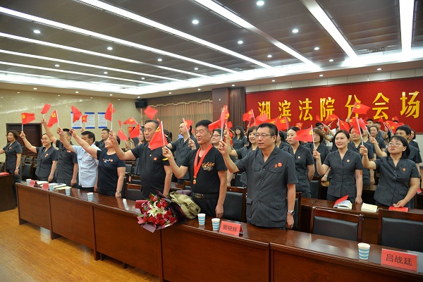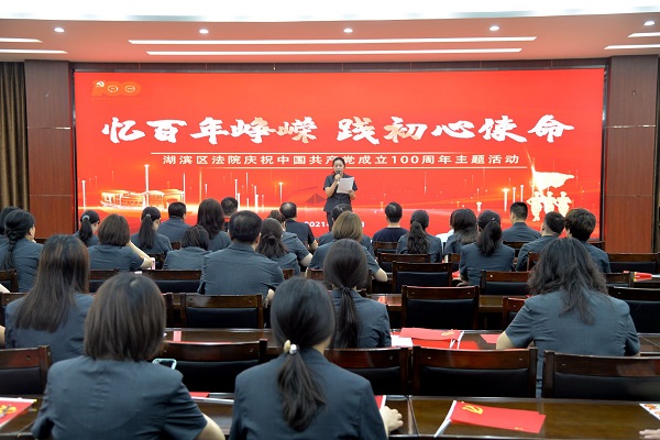 百年风雨兼程,百年伟业辉煌。7月1日,三门峡市湖滨区人民法院以“忆百年峥嵘,践初心使命”为主题开展形式多样活动,隆重庆祝建党100周年。受邀老党员和全体干警参加活动。