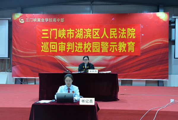 为全面贯彻落实关于防治未成年人违法犯罪工作安排,以高质量法治宣传教育,推动落实“立德树人”根本任务,9月18日,三门峡市湖滨区人民法院选取一起对于青少年极具典型教育意义的盗窃犯罪案件,到黄金工业学校开展巡回审判,进行警示教育,将真实的庭审过程“搬”进校园,变“抽象说教”为“现场感受”,增强法治教育的吸引力和说服力,上好“开学第一课”,着力提升同学们法律意识和风险意识,提高自我保护和犯罪防范能力。