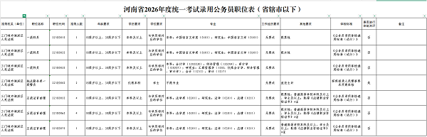 2026年河南省公务员招录公告
