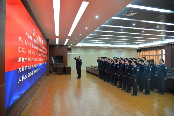 在庄严的誓词前,全体司法警察身着警服,整齐列队、精神抖擞。在领誓人、法警大队负责人郑青梅的带领下,大家高举右拳,庄严宣誓。铮铮誓言铿锵有力、回荡现场,是忠诚告白,也是郑重承诺。通过重温入警誓词,进一步强化了全体司法警察的身份认同和责任担当,激励大家始终牢记从警初心,永葆忠诚本色,以实际行动践行对党的绝对忠诚和对人民的庄严承诺。