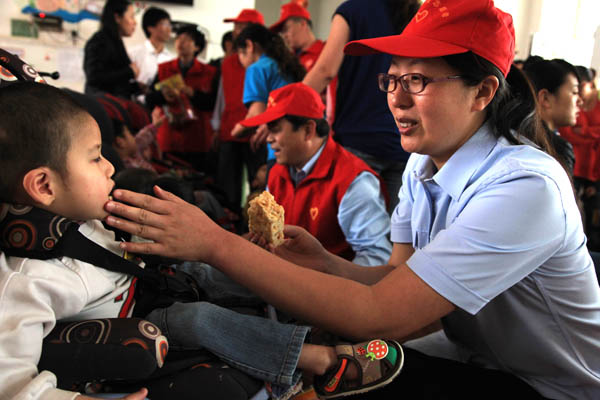 5月29日上午,河南省三门峡市中级人民法院组织法官志愿者到三门峡市社会福利院慰问残疾儿童。法官们给小朋友们带去了食品、玩具、文具等节日礼物,受到小朋友们的欢迎。
