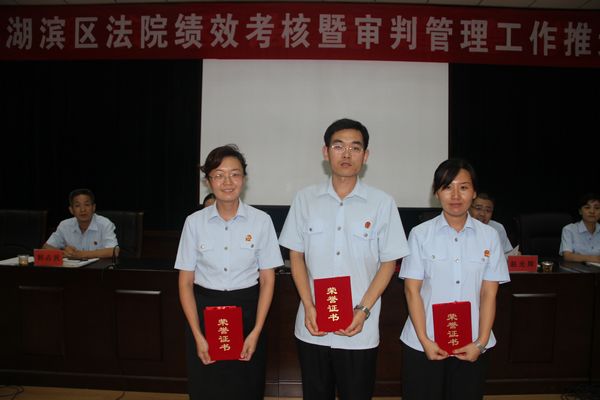 8月8日下午,湖滨区法院召开7月份审判管理工作推进会,通报了7月份审判质效、流程管理及业绩量化情况,对7月份获得办案标兵称号的主审法官工作室及个人进行了表彰,同时新设立一执行长和二个主审法官工作室,进一步推进主审法官工作室开展。